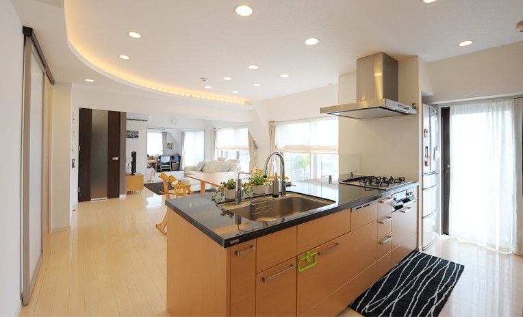 〈関連ページ〉キッチンを移動し間取り変更 空気の通り・視線の抜けを快適にしたマンションフルリフォーム