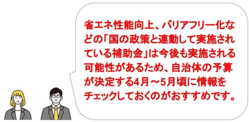※ただし断熱性向上に関しては、住宅全体の断熱性向上の一部として取り扱われるのが一般的で、トイレのみの断熱性向上は補助金・助成金の対象とはならない可能性が高い点に、注意が必要です。