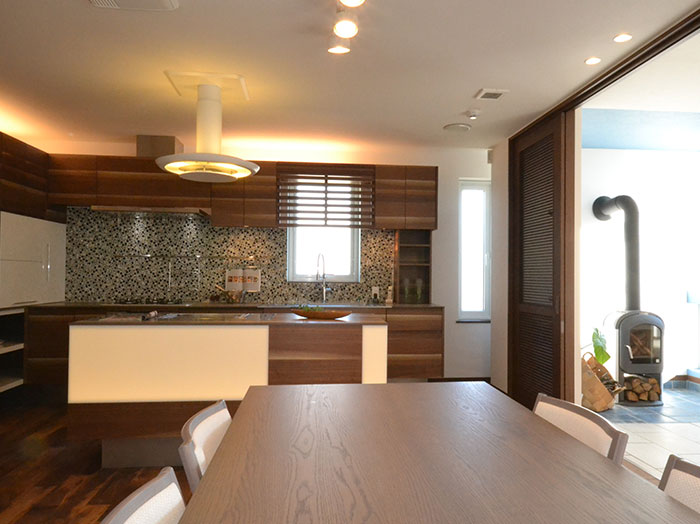 - 引戸をオープンにするとインナーテラス、玄関、ダイニングキッチンがひと間つづきになります。ふだんはオープンに、来客時は閉じてプライベート空間を確保します。