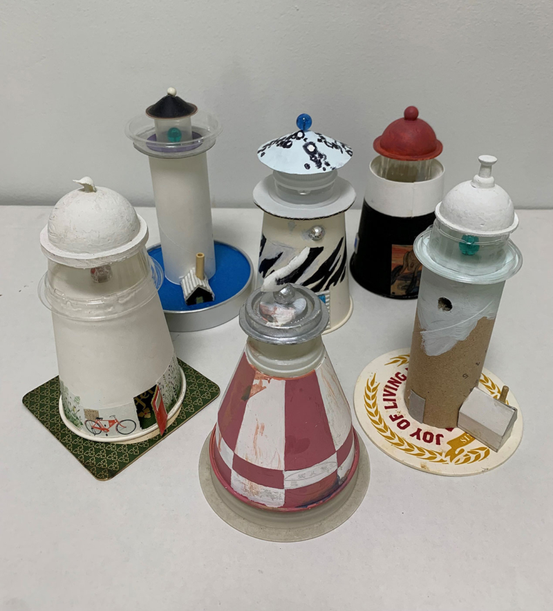 オリジナル灯台の立体と水彩画、フェイクアートなど多彩な遊び心で注目される。
