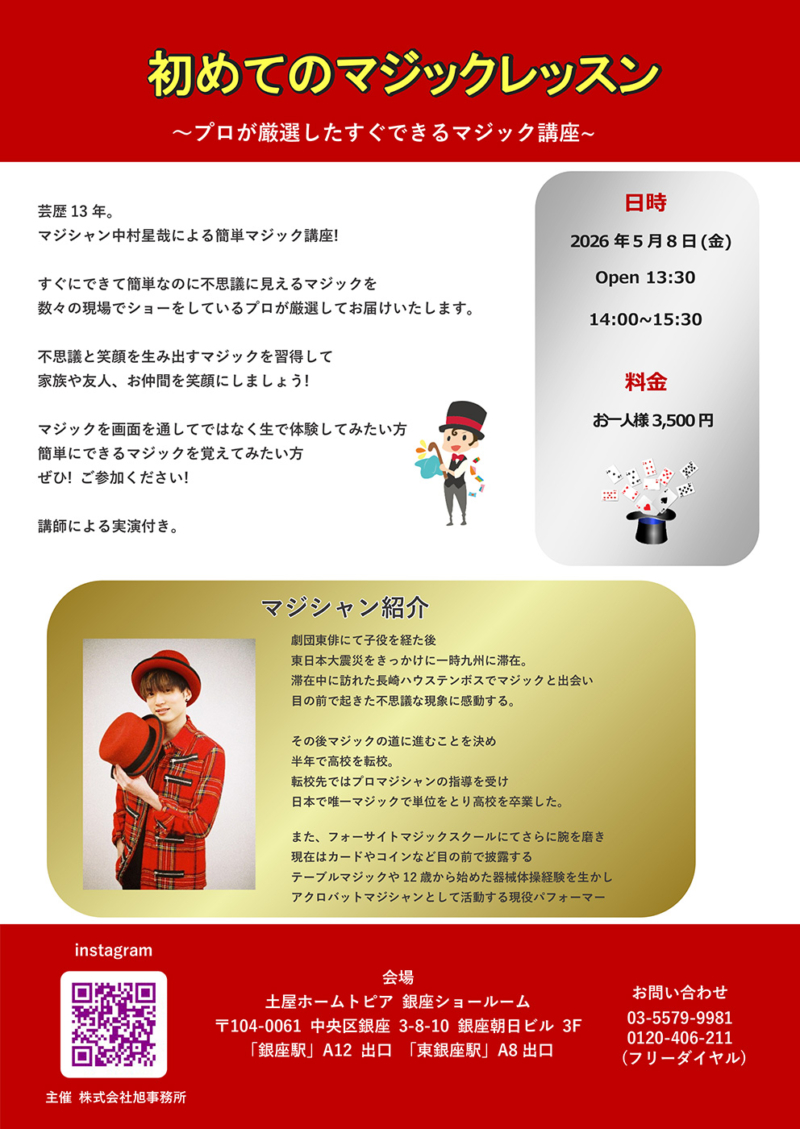 [銀座]簡単マジックワークショップ ~プロが厳選したすぐできるマジック講座~ 予約制