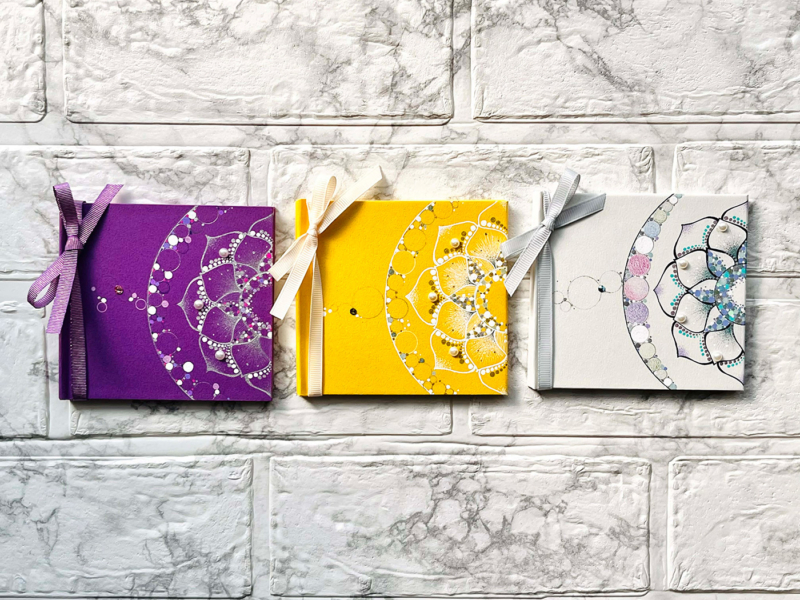 「曼荼羅レッスン」と、「製本作り」までが一回のレッスンで完成する手のひらサイズの曼荼羅BOOKが作れるワークショップ。