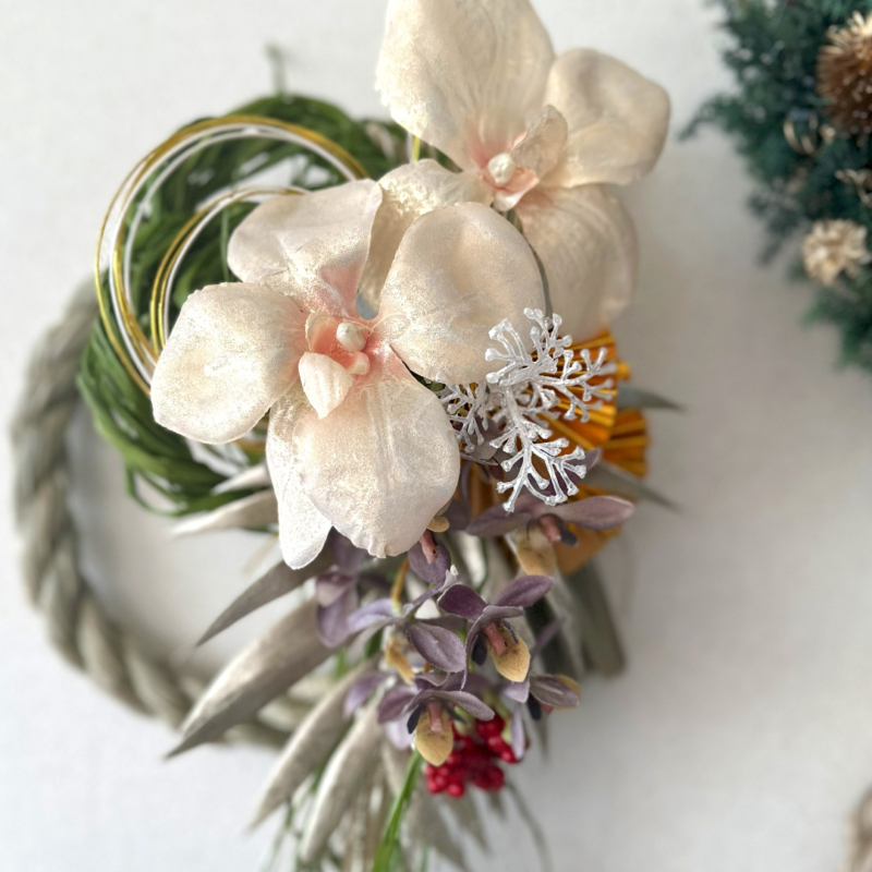 お正月を彩るしめ飾りを、アーティフィシャルフラワーでお作りいただける講座です。