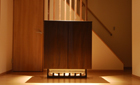 テレビ裏にはスレート系の石を貼り、3方から間接照明で照らしている