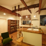 家族団らんはダイニングカウンターで。娘さんのリクエストだったブランコはご主人のお手製で、取り外しも可能