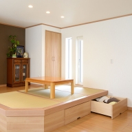 小上がりを残した畳の空間は、開放的な中にホッと落ち着ける空間として気に入っています。カウンター式ダイニングではキッチンとの距離も近く会話が弾み、休日には夫婦で蕎麦打ちの楽しみも増えました。断熱もしっかりしてもらった為、冬もストーブ1台で暖かく快適に過ごすことができました。