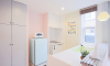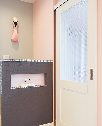 母娘の希望を明確にする為、個々の夢や拘りを教えて頂いた。二人の異なるご要望の境目を緩やかに色を用いて空間として繋るよう計画を進めた。お母様の子育てボランティアとしての地域活動。子育て中の娘様。二人の力とセンスで『地域のコミュニティースペース』がテーマになるようなお店を目指した。