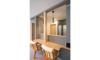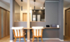 構造上抜けない柱は相席感覚のダイニングカウンターの仕切りとして活用