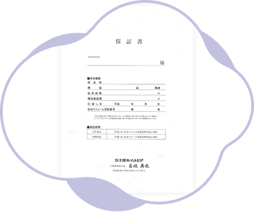 安心のアフターサービスアンケート調査を実施し、満足度向上に努めており、30年以上におよぶ取り組みの結果リピート率は60%以上、さらに最長10年にわたり、品質を保証。