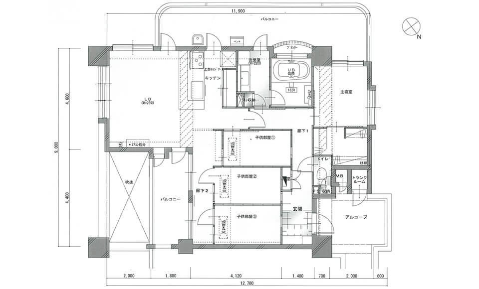 こちらは、お子さま1人1人の個室を設けることを目的として間取り変更をしたマンションリフォーム事例です。