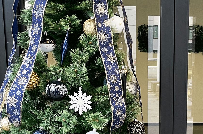 さて、旭川支店では今年もショールームにクリスマスツリーの飾りつけをしました。