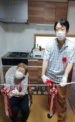 床の段差がなくなった台所で和やかにテープカットをしていただきました。