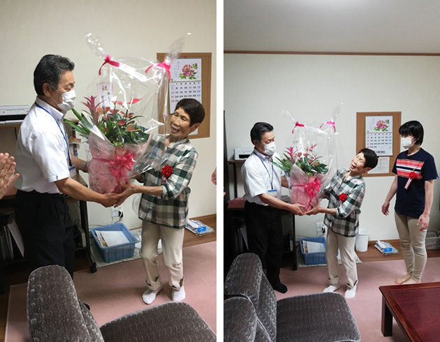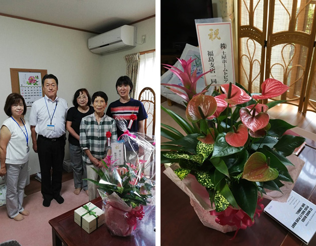 次に支店長清水からお客様に観葉植物のプレゼントです。