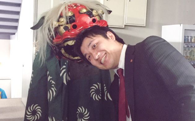 弊社の福田も、獅子に頭を噛まれて嬉しそうです。