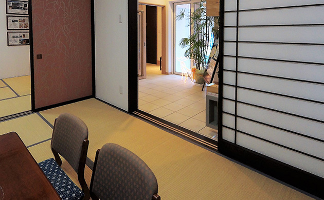 ホールの横は広々とした土間スペースになっていて、和室にはこの土間から直接上がることもできます。