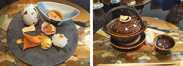 左:甘鯛と蟹の蕪蒸し