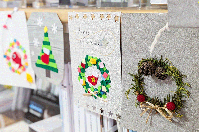 クラフト体験では、オリジナルのクリスマスまたはお正月のタペストリー作りを行いました。