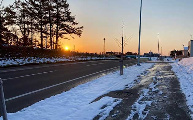 人が歩いた道を歩く・・・雪が溶けて、歩きやすいが・・・