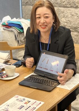 EIGHT COLOR診断に基づき、お一人ずつパーソナルカラー簡易診断から始まりました。