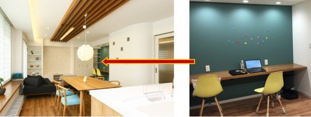 リノベポイント③は右奥の書斎兼学習コーナーとなります。