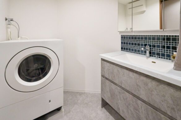 デザイン性と使いやすさを両立し、日々の家事もスムーズに行える洗面空間となりました。