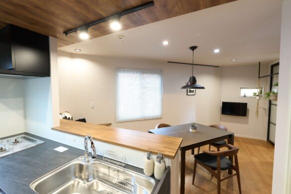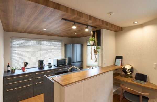 キッチンは配置を見直し、片側が壁についた開放的な対面キッチン(ペニンシュラキッチン)へと変更しました。