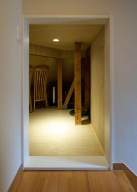 そこで壁を一部撤去し、断熱施工を行ったうえで、新たな収納スペースとして計画しました。