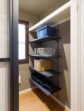 約1.7畳の収納空間を確保し、食品や日用品をまとめて収納できるようにしています。