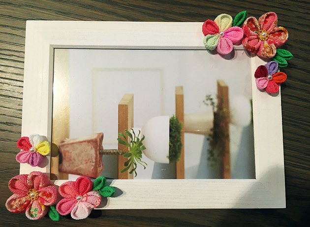 大きいお花2つと、一回り小さなお花4つをフォトフレームに付けて完成!