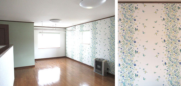 フラワー&バードのデザインがとっても素敵な壁紙です。